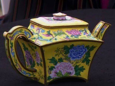 How much did this bright yellow porcelain antique sell for?
