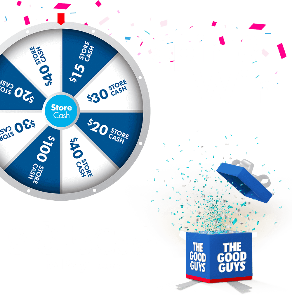 #Complete the form to setup your Digital Wallet. For a limited time only, spin the wheel to win, everyone is a winner up to $100 StoreCash. StoreCash expires after thirty (30) calendar days of the dispatch date. Your StoreCash winnings will be automatically deposited in your personal wallet within 1 business day. To eligible and receive StoreCash for this promotion you must be a Team Member at The Good Guys and hold a valid employee number. StoreCash for this promotion is not transferrable. StoreCash T&Cs and Digital Wallet T&Cs apply.