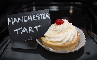 4) What type of jam goes into a Manchester tart?
